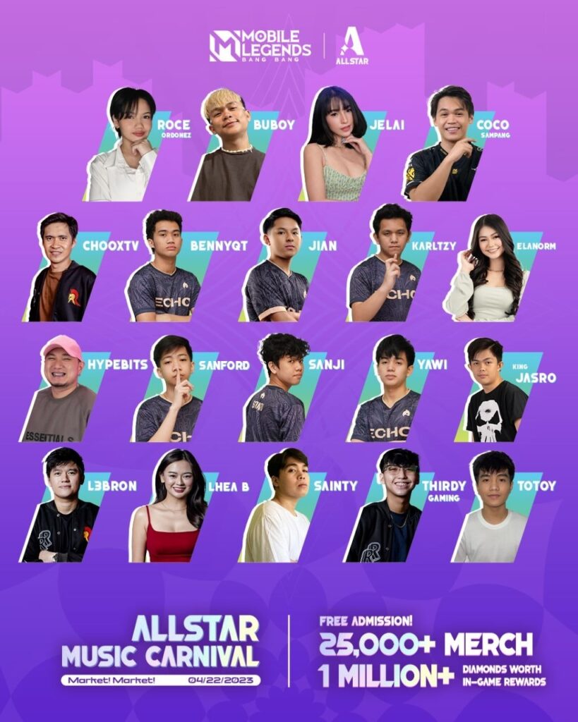 Mobile Legends: Bang Bang Philippines will mount its first MLBB-themed music carnival event to gather users around Metro Manila on April 22, 2023, in Market Market, Taguig. The event will be spearheaded by famous artists and MLBB creators ChooxTV, Jelai Andres, Buboy Villar, and a secret bida who have been part of the Be The Bida campaign that aims to encourage users to be their own superstar.