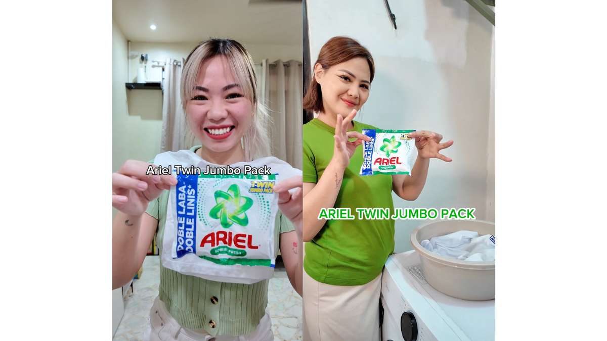 “Buti na lang nandyan ang Ariel Twin Jumbo Pack to the rescue,” she said in the video. “Subok na talaga namin ‘to sa pagtanggal ng tough stains. Kayang-kaya in just one wash.”