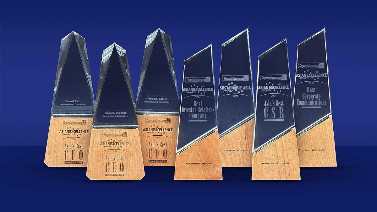 SM Investments Corporation (SM Investments) was recently accorded with seven prestigious awards at the 14th Asian Excellence Awards, organized by Corporate Governance Asia magazine. These accolades highlight SM Investments’ unwavering commitment to corporate excellence, environmental stewardship, and sustainable business practices.